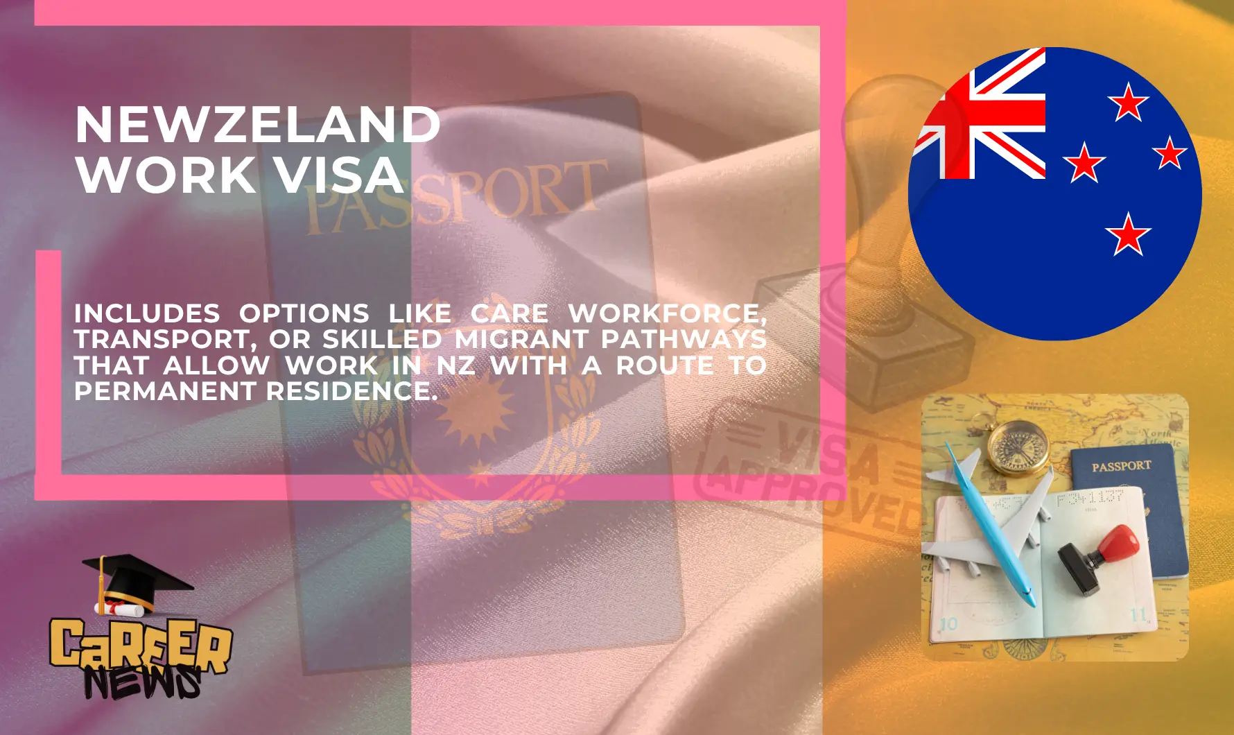 | Work to Residence Visas | Includes options like Care Workforce, Transport, or Skilled Migrant pathways that allow work in NZ with a route to permanent residence. |
