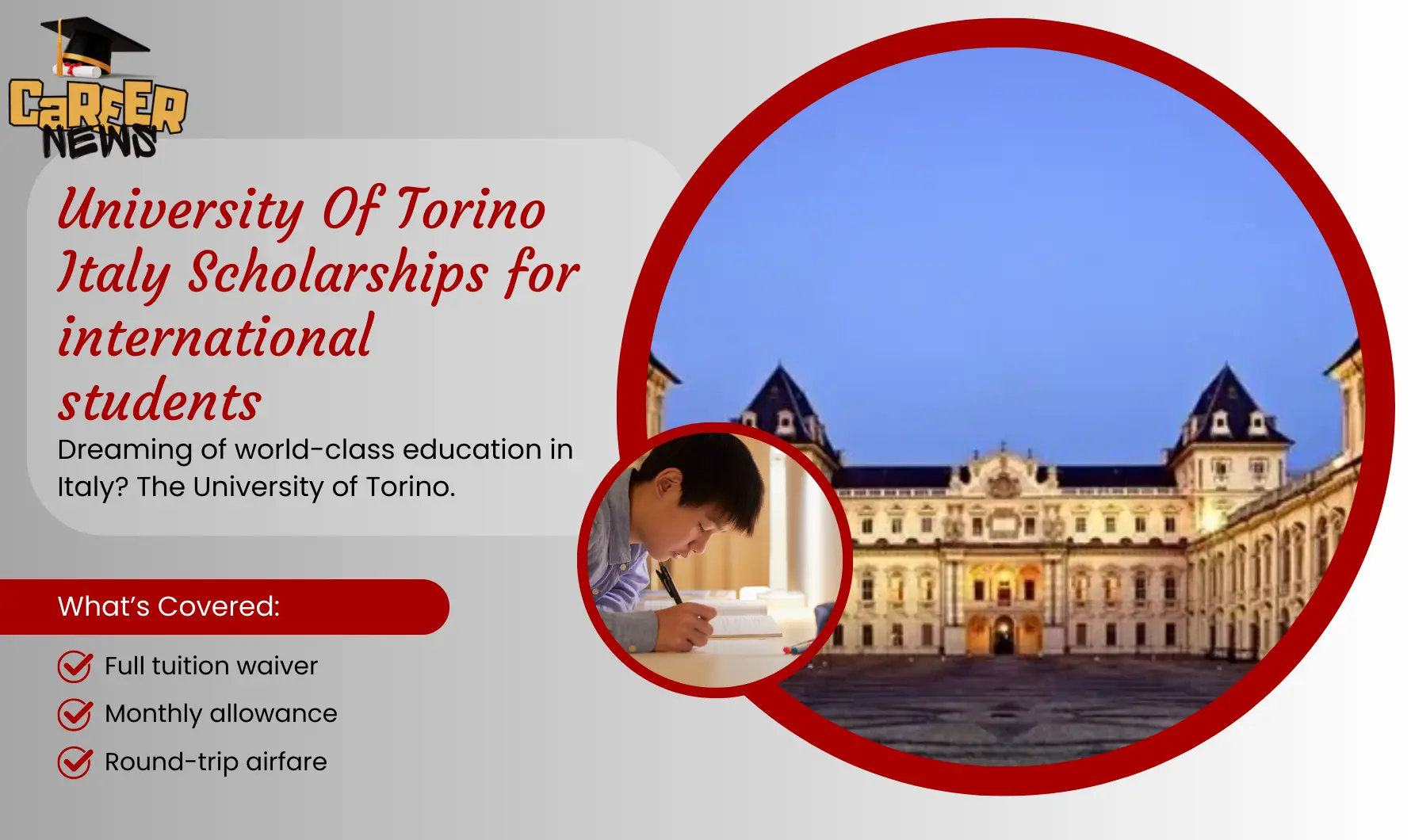 | UniTo for Students at Risk | International students with refugee status, international/temporary protection, or special protection | €11,000 per year (gross) |