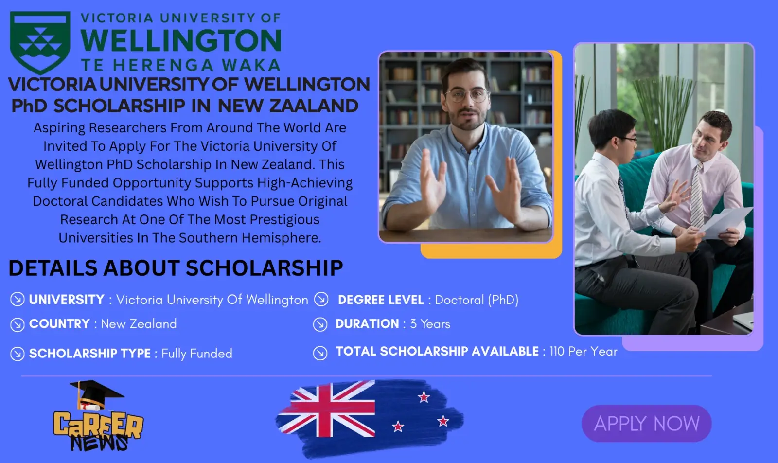 Wellington Doctoral ScholarshipDomestic & international studentsPhDAnnual stipend + full tuition fees